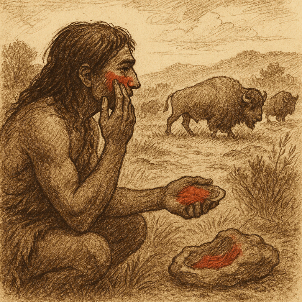 Cave handprints, red ochre burials, animal paintings, and body markings appear in unconnected cultures, suggesting that paint-making was not “taught” globally.